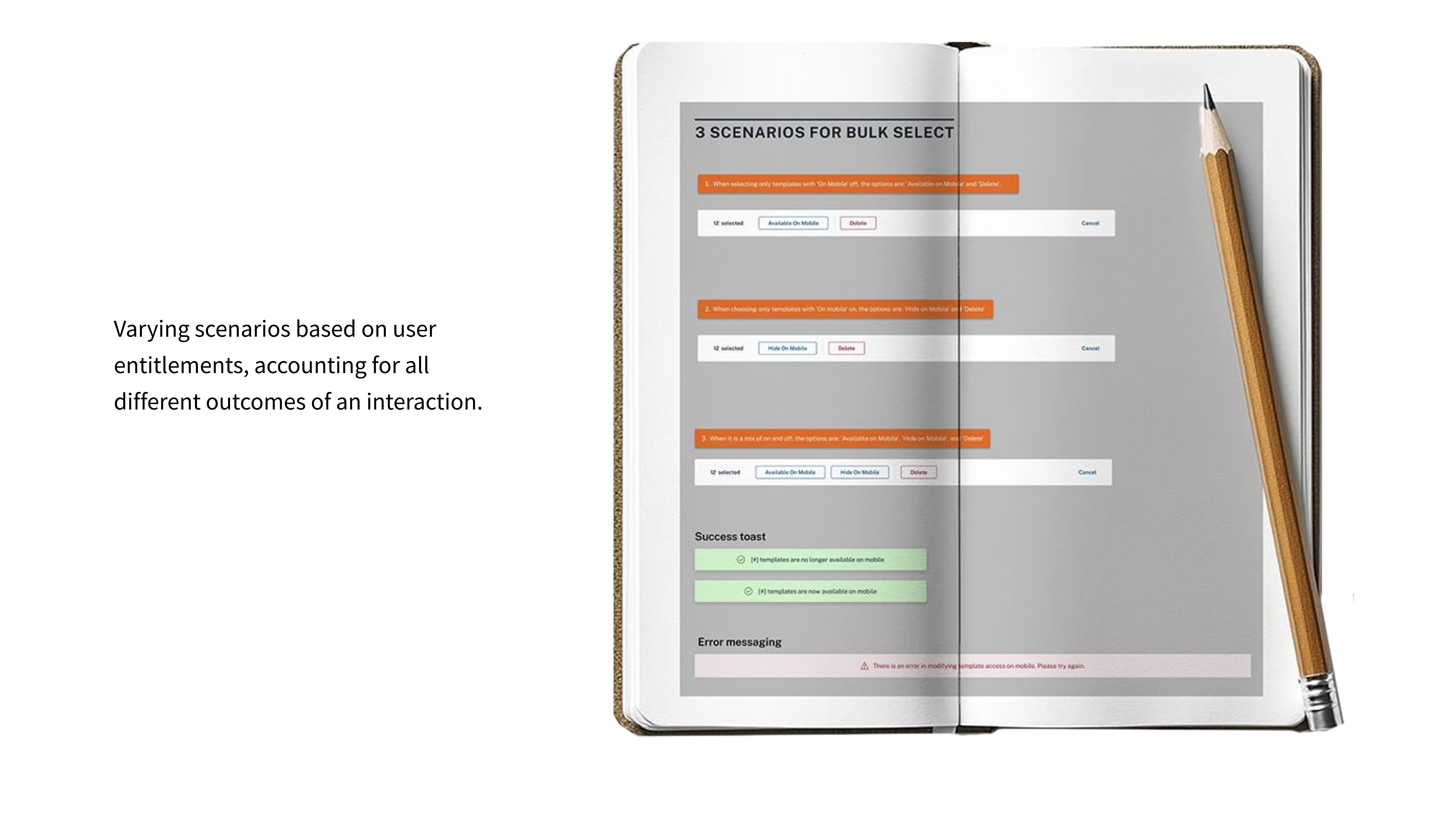 Varying scenarios based on user entitlements, accounting for all different outcomes of an interaction.